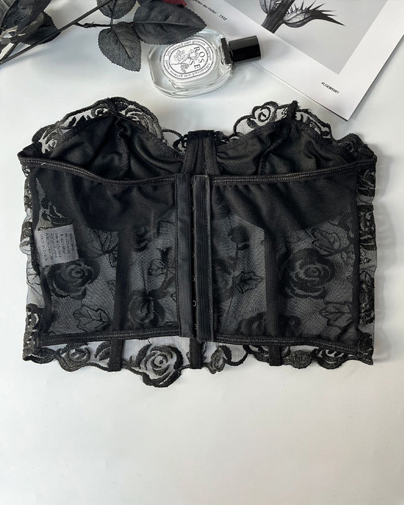 Bloemen Axelbandslos Tubtopp met Steunkorsett inn Mesh